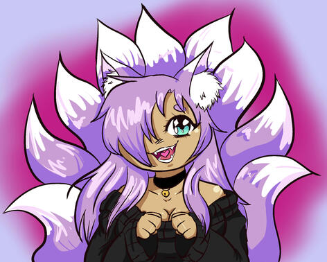 Thank you for checking out the carrd! My name is Kyubii, and I'm you're Pastel Purple Fox E-Goddess making you content from inside of your router while I fuel my silly digital hobbies by eating a little bit of your
